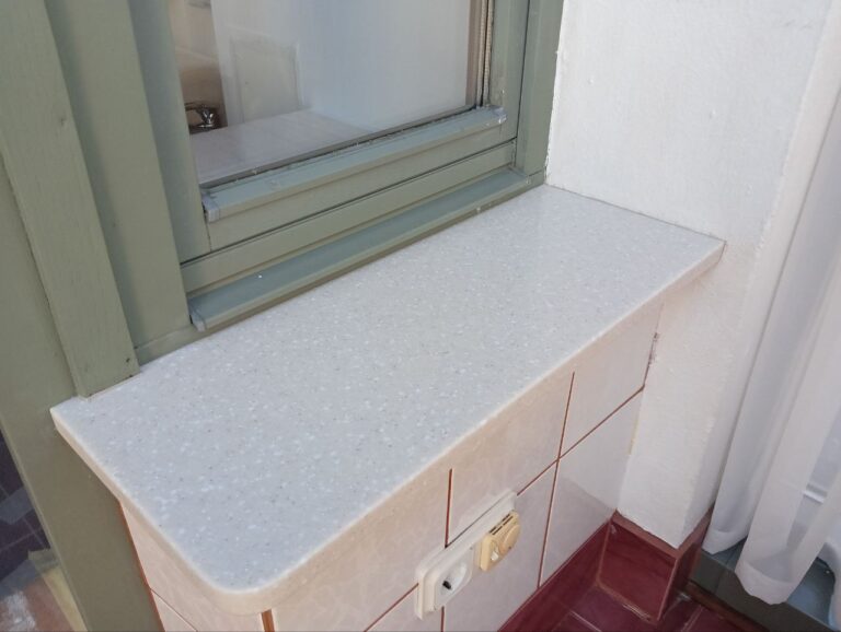 Гарантия на материал составляет в среднем 10–15 лет (в зависимости от производителя). На практике такие подоконники служат значительно дольше. Во многом потому, что поверхность можно обновлять и восстанавливать: убирать мелкие царапины, следы эксплуатации и возвращать первоначальный внешний вид.