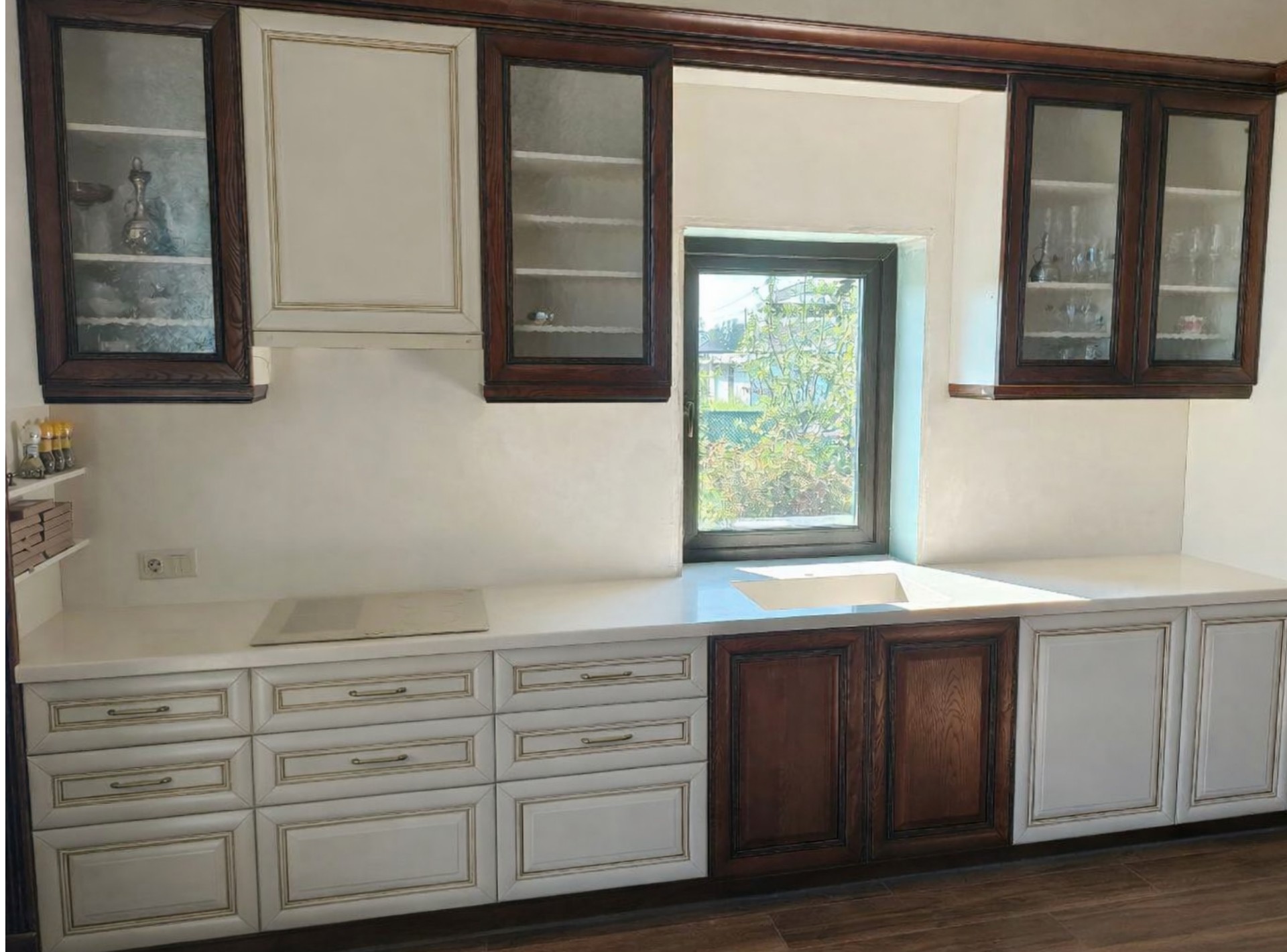 Обычно такой вариант подходит, когда нет верхних модулей кухни.