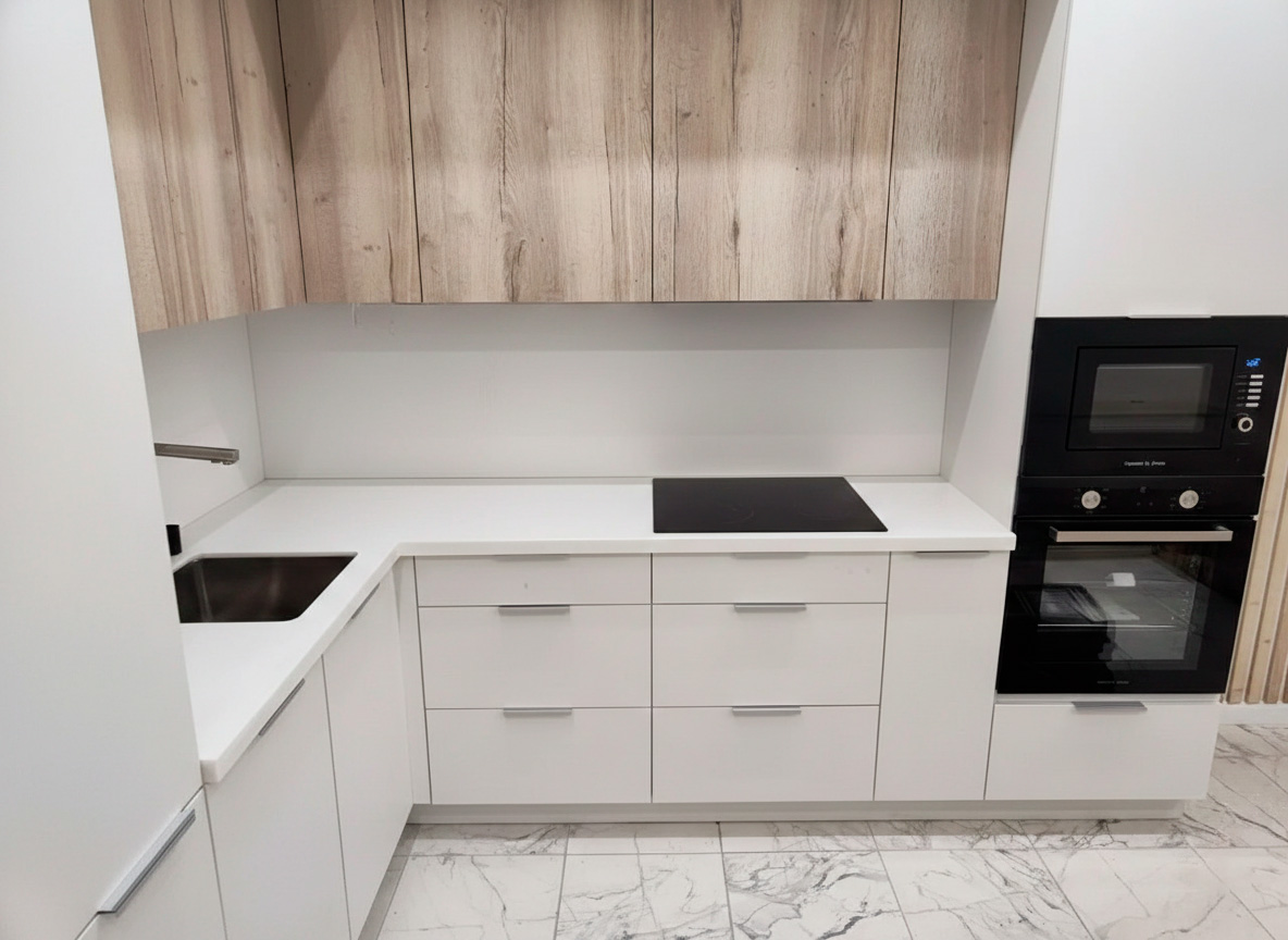Любой цвет Акрилового камня можно использовать в качестве кухонного фартука.